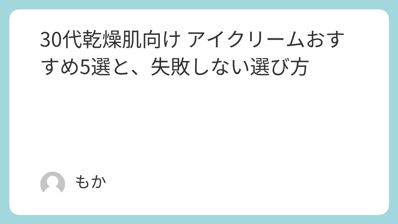 30代乾燥肌におすすめのアイクリーム5選 プチプラで目元の小じわ・ハリ不足をケア
